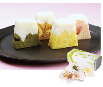 富士山をモチーフにした、しっとりふんわり食感の可愛らしい和菓子。小麦粉や油を使用せず、自然の色合いを活かして手作りしました。四季折々の素材を楽しめる、丁寧な暮らしに寄り添う静岡土産です。