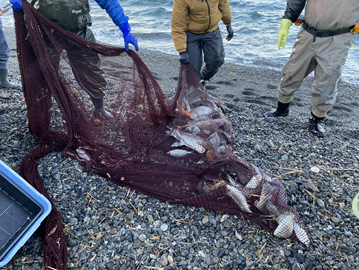 本研究では、地引網による漁獲データ(魚種組成・体サイズ)と海洋環境データを統合的に解析し、三保沿岸域における魚類群集の季節変動と環境要因の関係性を明らかにします。さらに、得られた知見を基に科学的根拠に基づく地域資源情報を発信し、地引網体験価値の向上および地域振興への貢献することを目的とします。